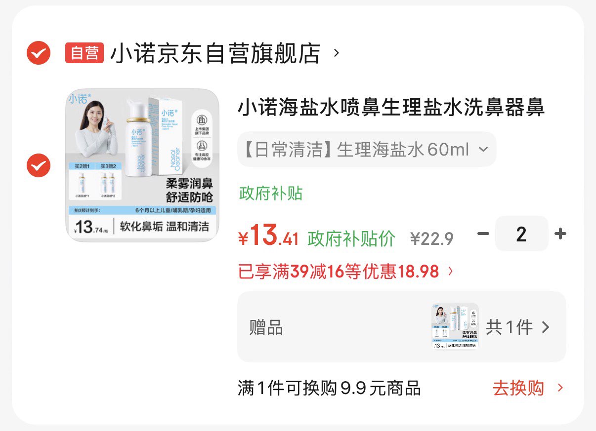 小诺生理盐水洗鼻喷雾60ml