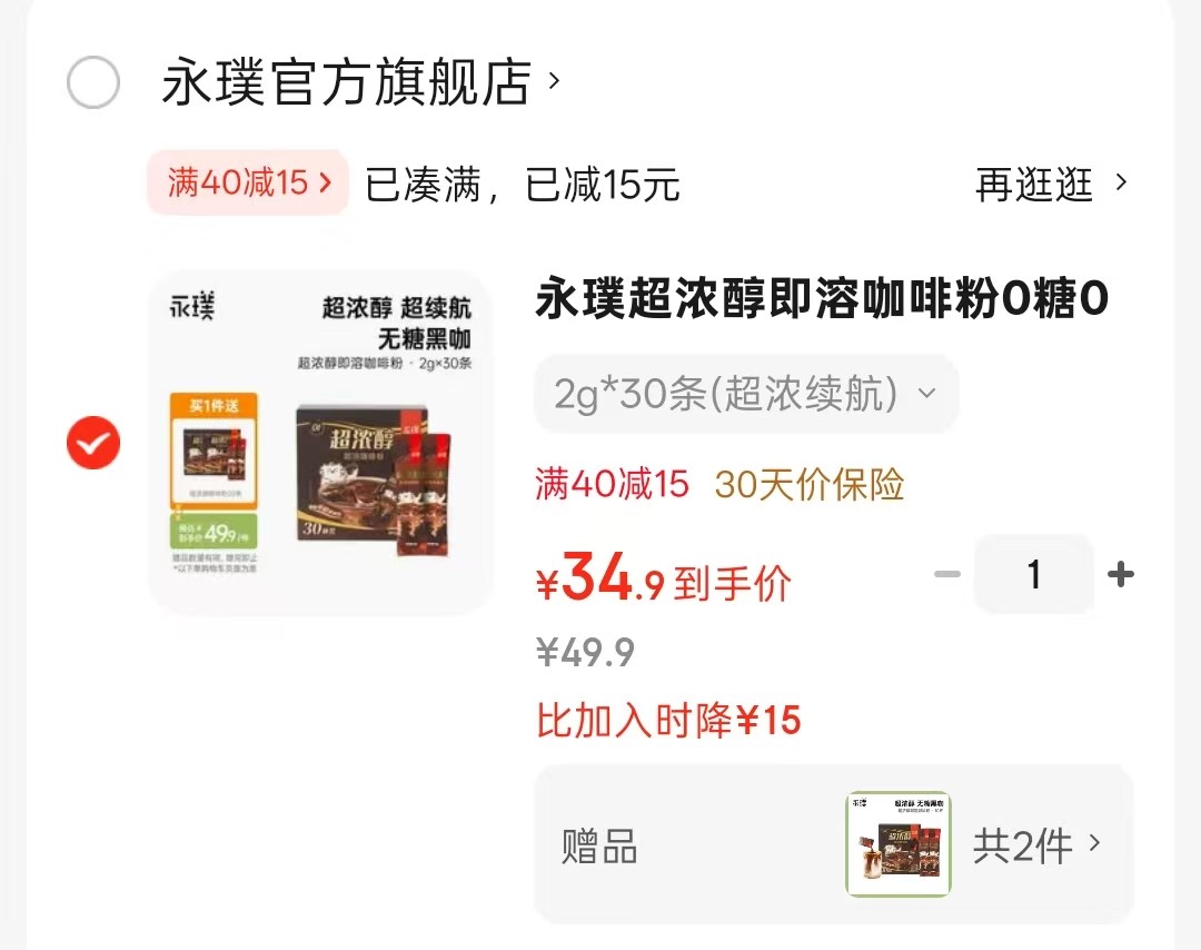 永璞 超浓醇即溶咖啡粉0糖0脂2g/条 2g*30条【34.5】有赠品