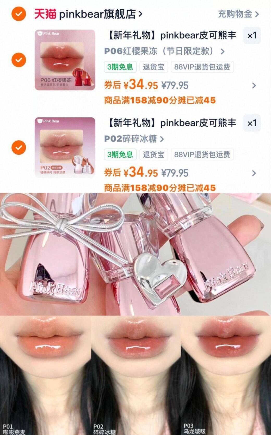 34.9r/支唇釉任选2支69.9亓 pinkbear皮可熊!镜面丰唇蜜 色号都绝美!打造水润嘟嘟唇好单发报员2025年12月30日 18:100举报 34.9r/支唇釉任选2支69.9亓pinkbear皮可熊!镜面丰唇蜜色号都绝美!打造水润嘟嘟唇又嫩又欲!秋冬涂真的很https://m.tb.cn/h.7T0uJEk复制文案