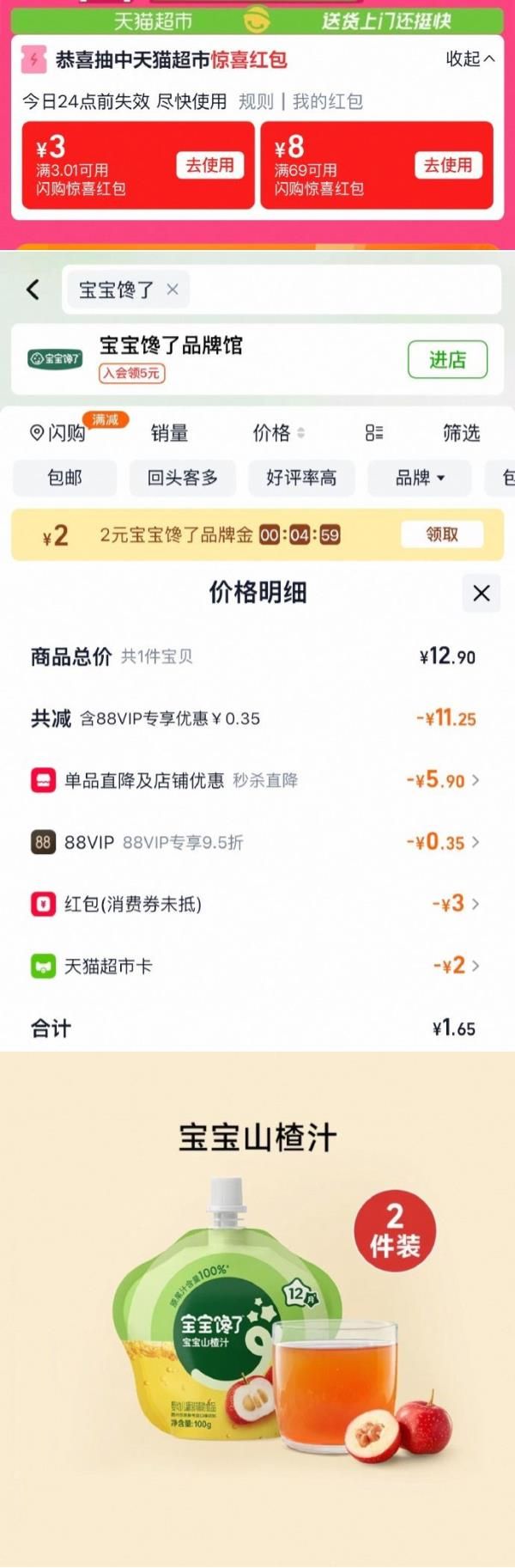 宝宝馋了婴幼儿山楂汁100g*2袋选项 部分地区可用3红包 超市首页搜索宝宝馋了,部分有2品牌金