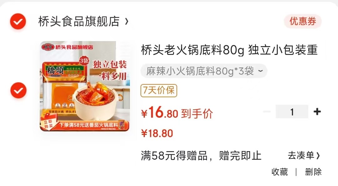 桥头 老火锅底料80g 独立小包装*3袋【16.8】