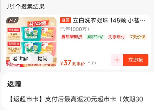 速度锁,手慢无 去直播间747号拍 拍下37亓,饭20超市卡好单发报员2025年12月31日 15:140举报 速度锁,手慢无去直播间747号拍拍下37亓,饭20超市卡到手17亓,折4.2亓/盒立白 洗衣凝珠 148颗https://u.jd.com/A1ZnFuu复制文案