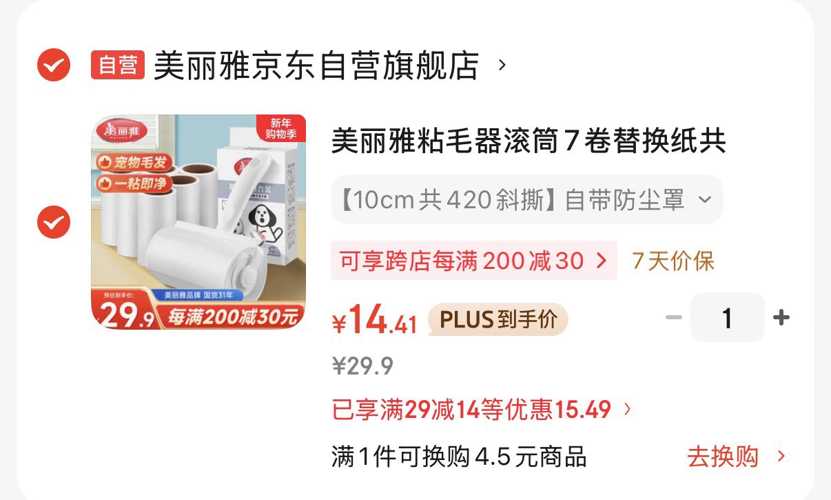 美丽雅粘毛器 7卷替换纸