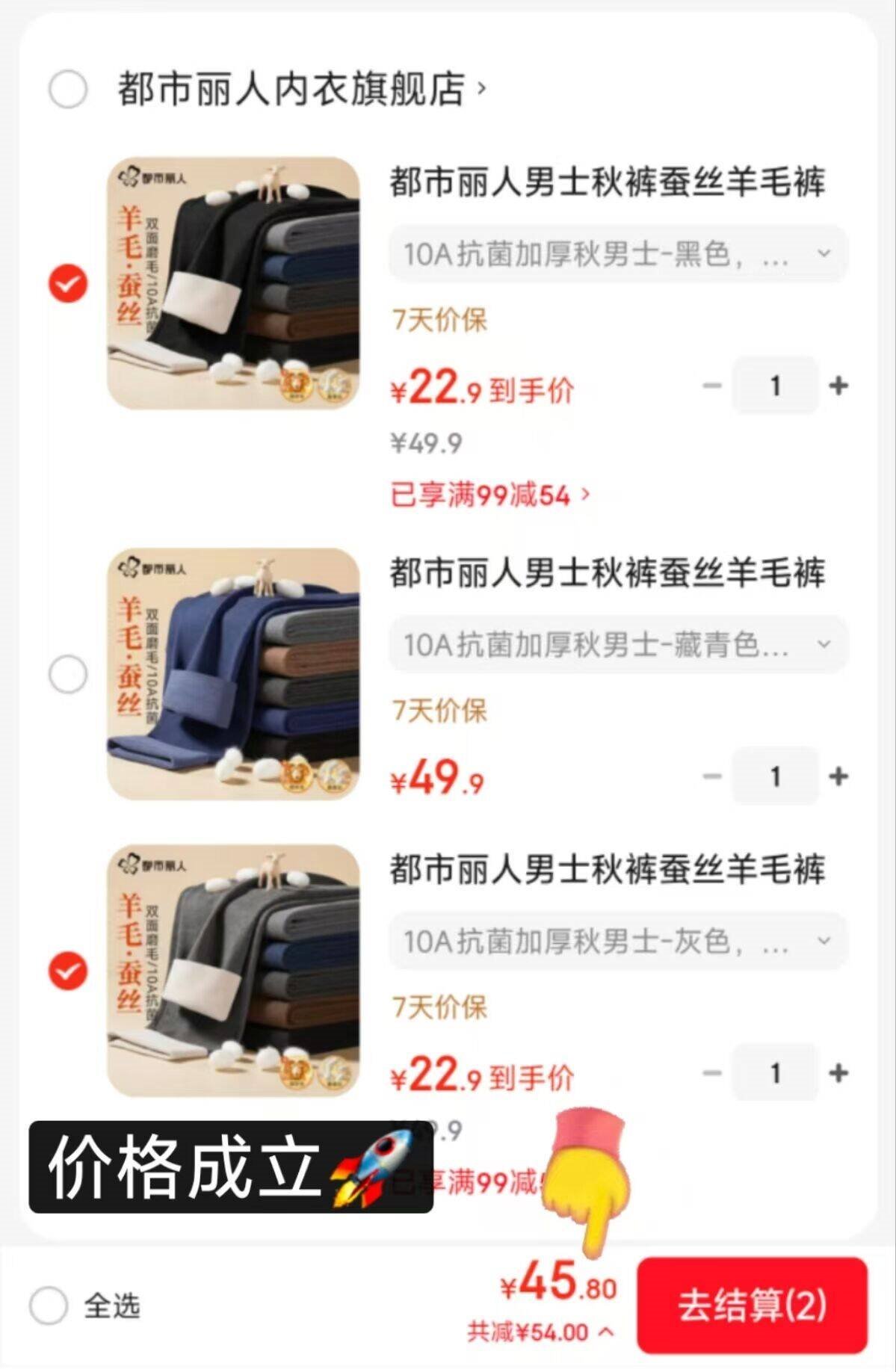 都市丽人 男蚕丝羊毛保暖裤 买2件实.付45.8亓,蓄热锁温 好单发报员 2025年12月31日 16:38 0 举报 都市丽人 男蚕丝羊毛保暖裤https://u.jd.com/AgZhaOA买2件实.付45.8亓,蓄热锁温 复制文案