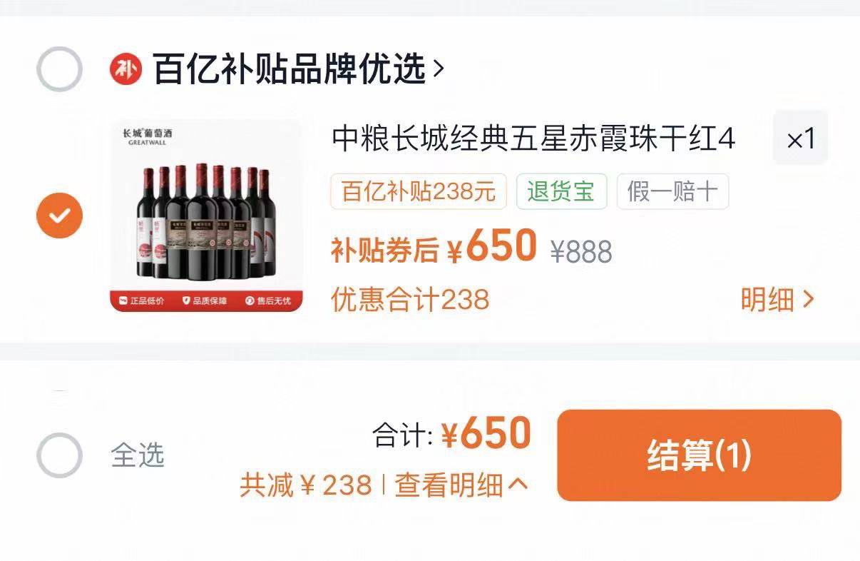 限时百亿补贴,拍下650亓 到手共4瓶,折合162.5/瓶 中粮长城经典五星赤霞珠干红4瓶 好单发报员 2025年12月31日 16:42 0 举报 限时百亿补贴,拍下650亓到手共4瓶,折合162.5/瓶中粮长城经典五星赤霞珠干红4瓶https://m.tb.cn/h.7hRNc5n 复制文案