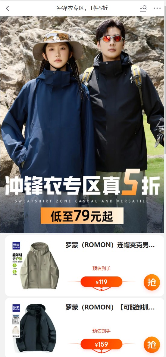 罗蒙 冲锋衣五折专区【79】元起 https://u.jd.com/AaAUn0D