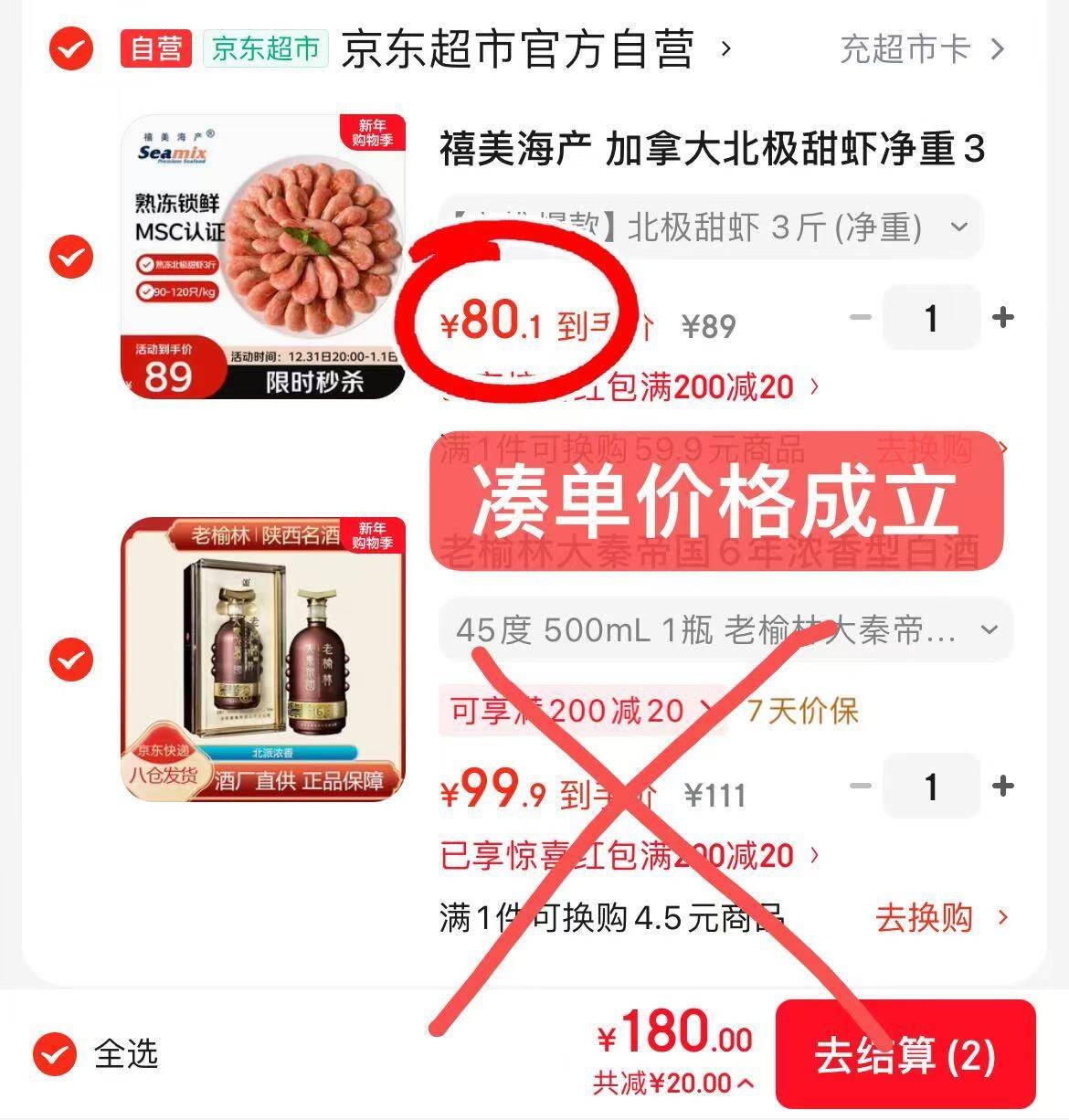 折甜虾80.1亓,折26.7亓/斤