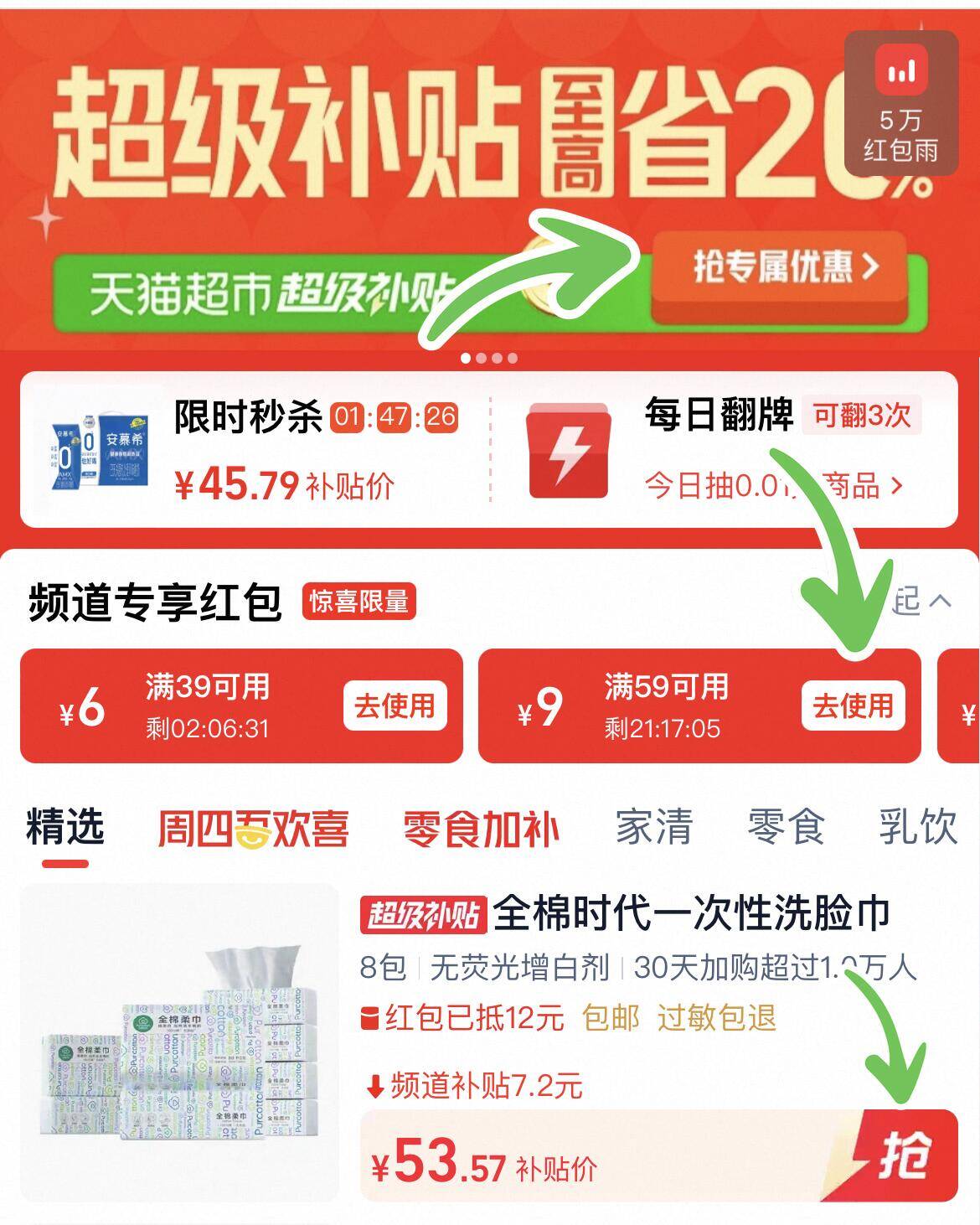 53.5亓折6.6亓/包 下拉超级补贴領59-9卷 全棉时代 纯棉洗脸巾80抽*8包 好单发报员 2026年01月02日 18:52 0 举报 53.5亓折6.6亓/包下拉超级补贴領59-9卷全棉时代 纯棉洗脸巾80抽*8包https://m.tb.cn/h.7h1612U 复制文案