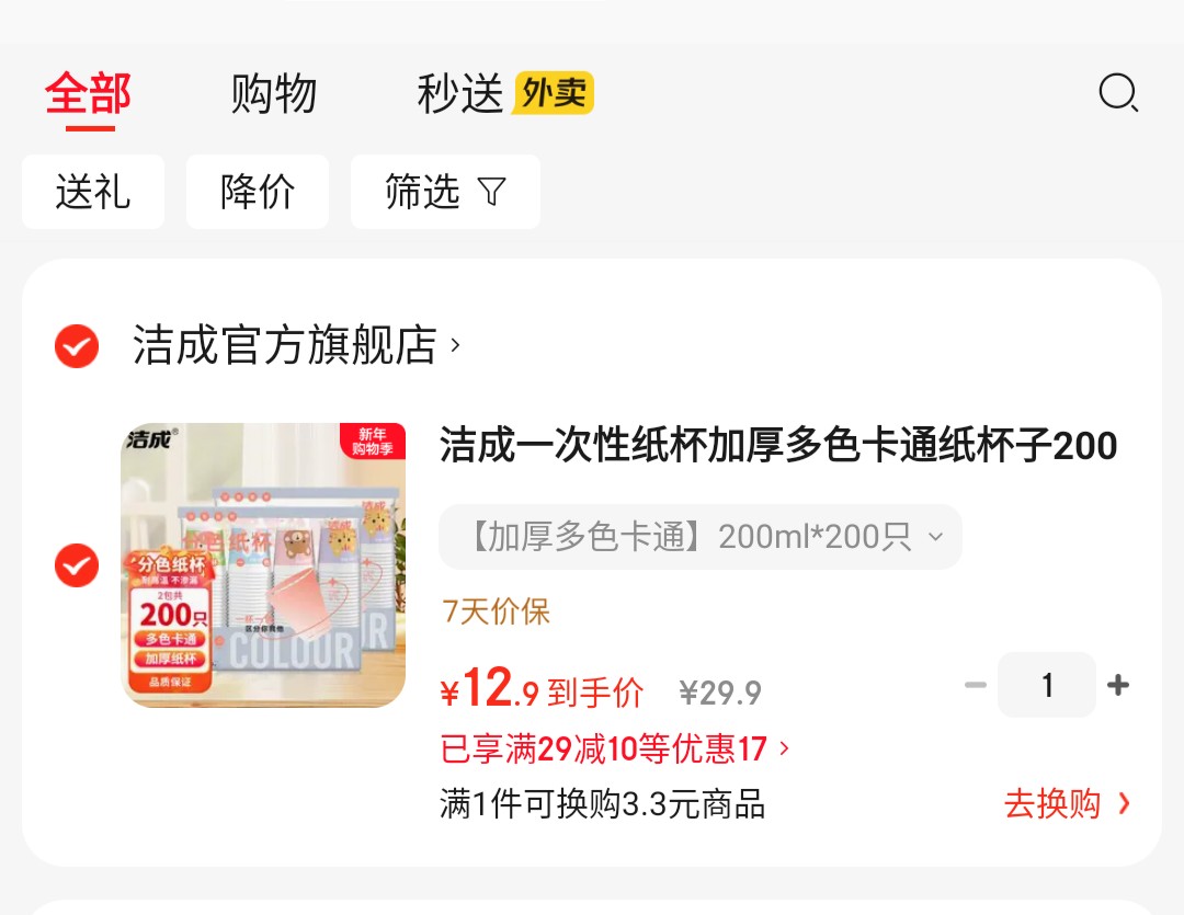 洁成 一次性纸杯加厚多色卡通纸杯子200ml *200只【12.9】