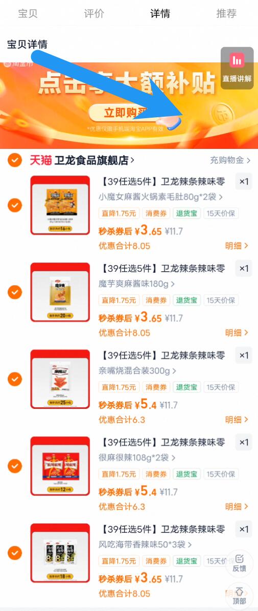 0点4.3亓/件速下拉详情拍 任拍5件21.7亓,叠7.4金币 需拍5个不同的选项好单发报员2026年01月03日 23:400举报 0点4.3亓/件速下拉详情拍任拍5件21.7亓,叠7.4金币需拍5个不同的选项【卫龙】辣味爆款零食组合https://m.tb.cn/h.77ntnqD复制文案