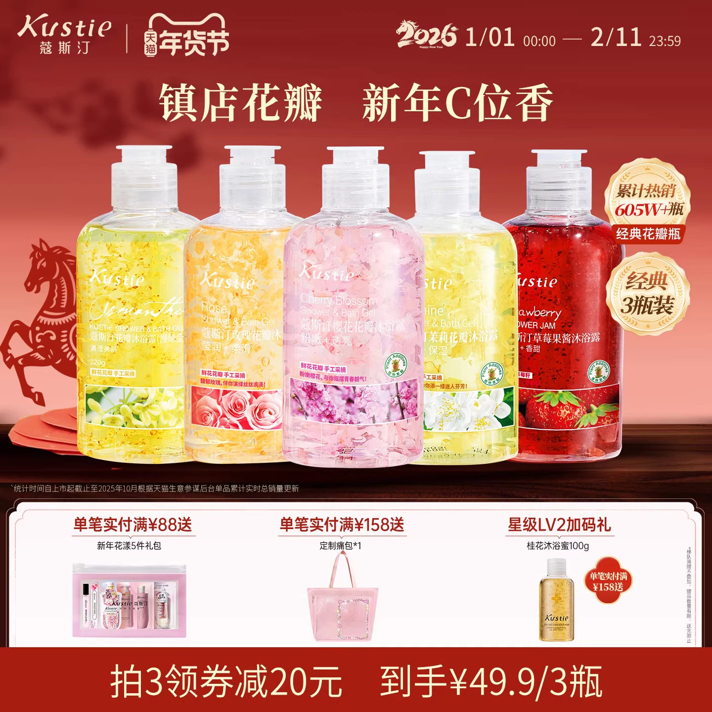 3瓶28.7亓史低平时39.9的 一瓶还不到10块!趁划蒜囤 --- 好单发报员 2026年01月04日 10:12 0 举报 3瓶28.7亓史低平时39.9的一瓶还不到10块!趁划蒜囤---蔻斯汀沐浴露花瓣220g 3瓶https://m.tb.cn/h.7SdTsz1右上角叠加淘金币价格成立 复制文案