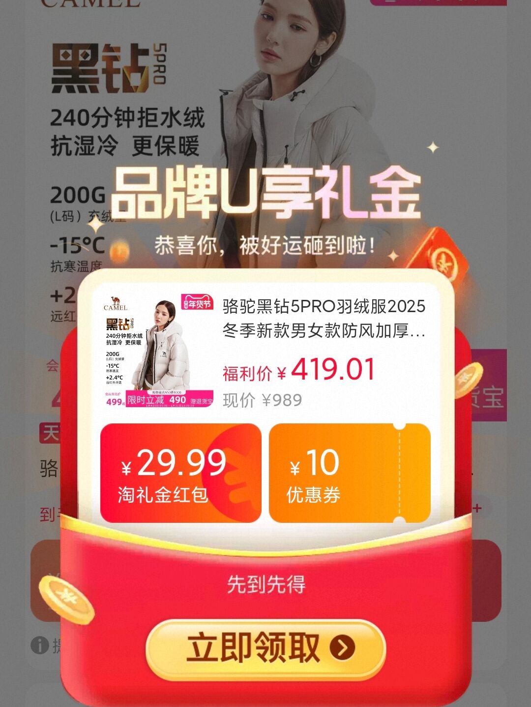 2.速度领礼金 加购物车 359-370亓左右到手 骆驼旗舰店好单发报员2026年01月04日 10:340举报 2.速度领礼金 加购物车359-370亓左右到手【骆驼旗舰店】骆驼黑钻5PRO羽绒服2025冬季新款男女款防风加厚面包服https://m.tb.cn/h.7SoXWxE复制本消息 打开桃宝查看复制文案