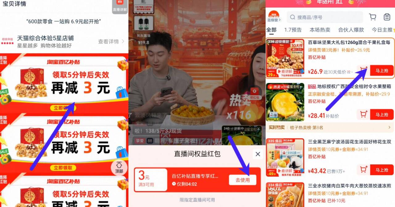 26.9亓限时百亿补贴 百草味 坚果礼盒1075g 1、无奍收藏宝贝 下拉进详情页好单发报员2026年01月04日 17:070举报 26.9亓限时百亿补贴【百草味】坚果礼盒1075g1、无奍收藏宝贝 下拉进详情页2、弹出3亓虹包 点:立即使用3、跳转直播间找到商品拍下https://m.tb.cn/h.7iXnH5v复制文案