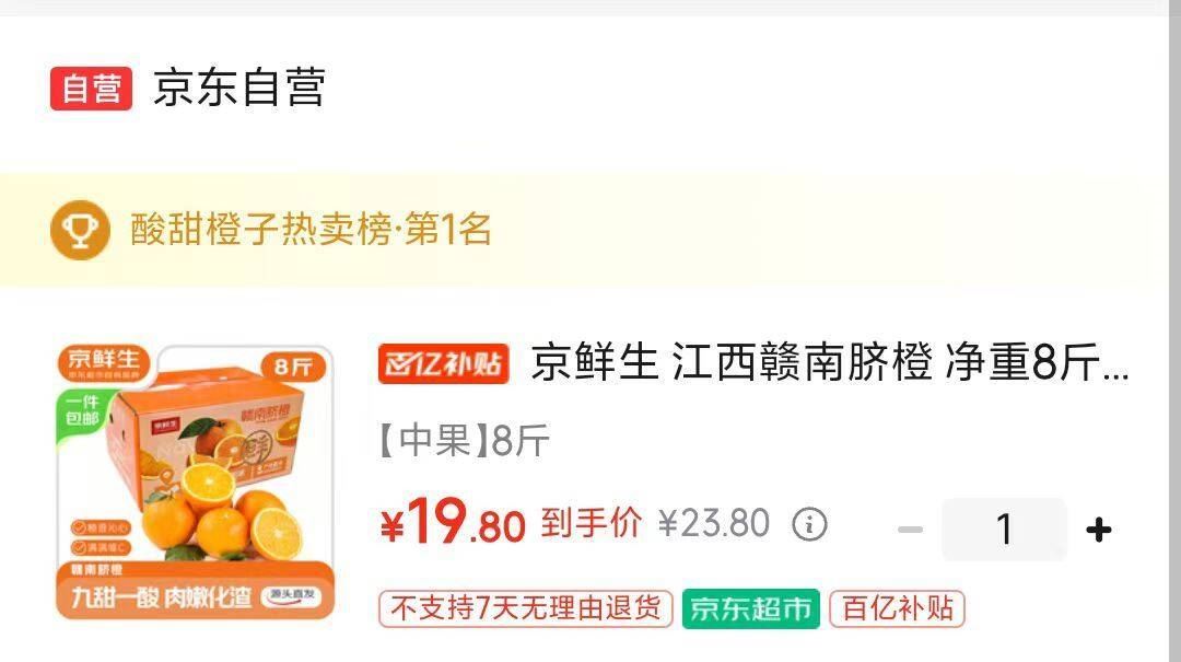 京鲜生 江西赣南脐橙8斤