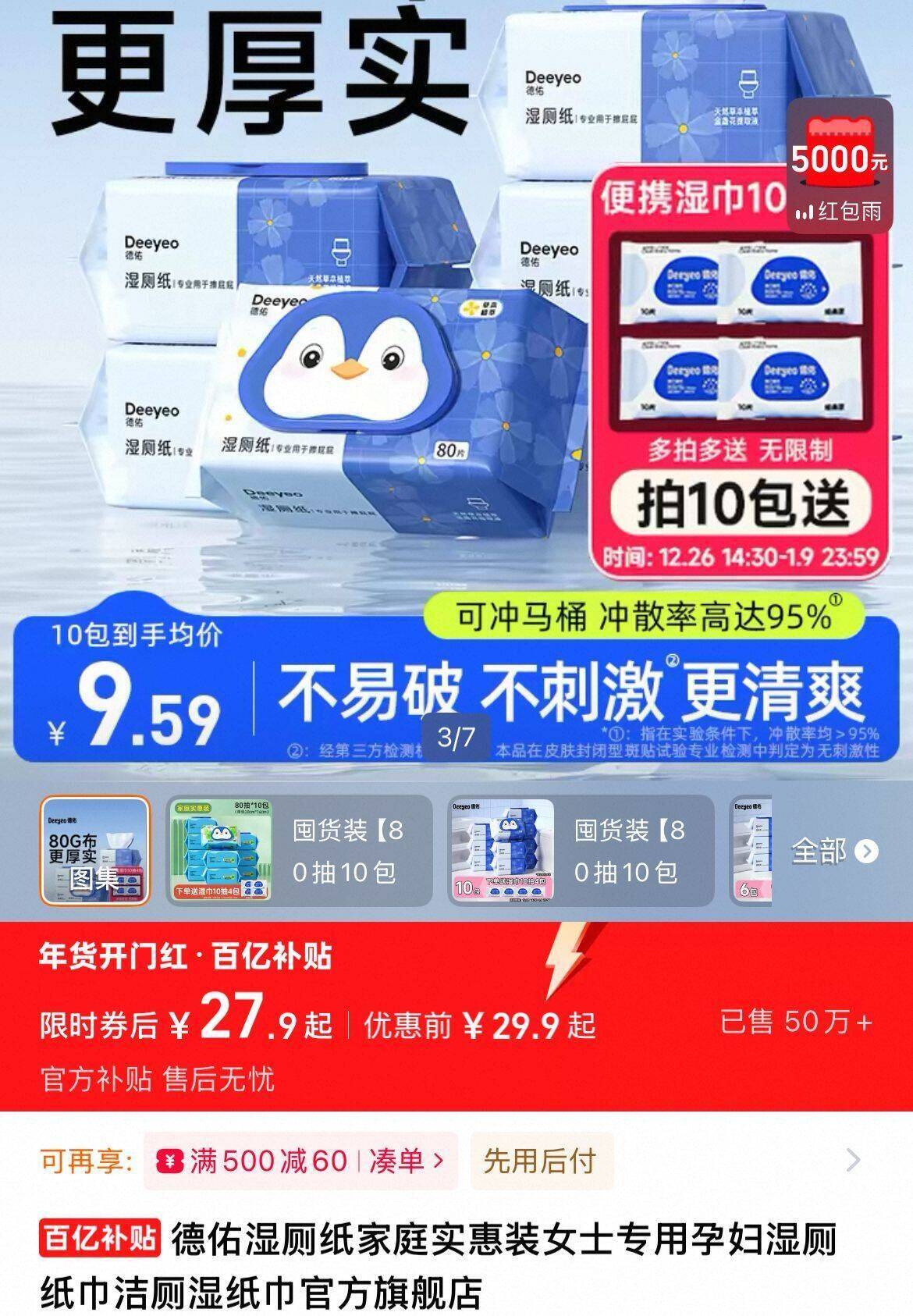 27.9元!需叠2限时红包 德佑 湿厕纸80抽*3包 含水量恰到好处!5秒速干 好单发报员 2026年01月05日 13:30 0 举报 27.9元!需叠2限时红包【德佑】湿厕纸80抽*3包含水量恰到好处!5秒速干一擦即净 水洗一样舒服哇!-https://m.tb.cn/h.77FnWLi 复制文案