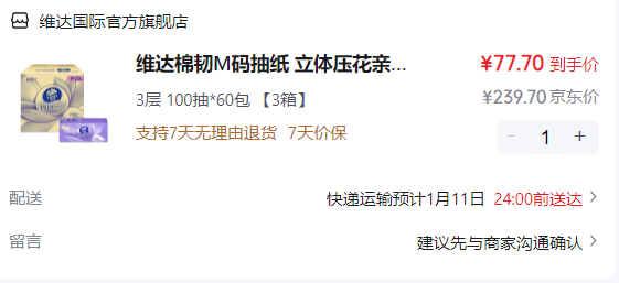 下单77元,到手60包M码抽纸