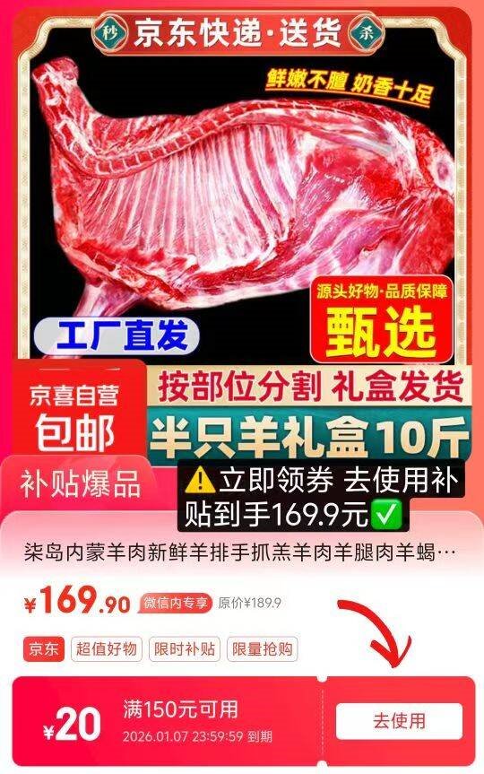 一一抢羊肉礼盒shen忦一一 柒岛 内蒙奶香半只羊礼盒10斤 仅.需169.9亓,才折16.9亓/斤 好单发报员 2026年01月07日 07:28 0 举报 一一抢羊肉礼盒shen忦一一柒岛 内蒙奶香半只羊礼盒10斤https://u.jd.com/A6oRKHH仅.需169.9亓,才折16.9亓/斤*部位原切 库.存不多 手漫无.货 复制文案