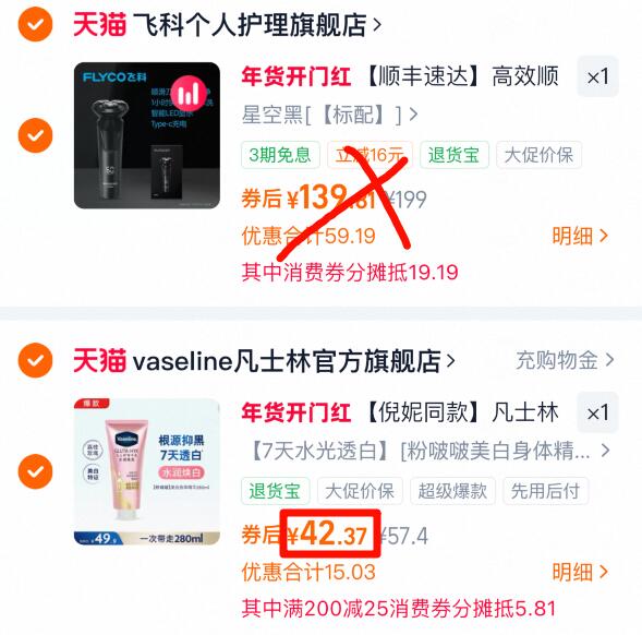 2、凑单商品加购1件 一起付款然后退掉凑单