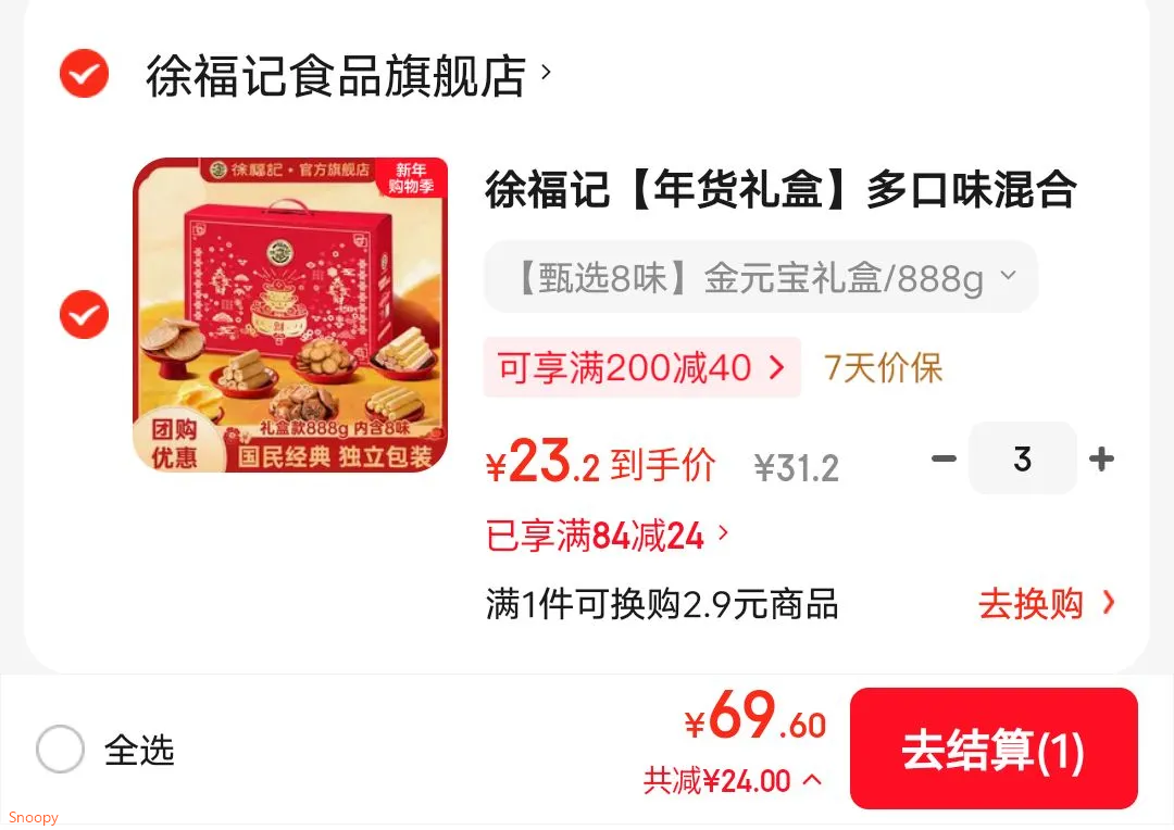 23.2元/箱 拍3件共69.6元! 徐福记 多口味混合零食礼盒 888g 各种零食都有 年货好价提前备上~好单发报员2026年01月07日 11:200举报 23.2元/箱 拍3件共69.6元!徐福记 多口味混合零食礼盒 888ghttps://u.jd.com/ADmpWdw 各种零食都有 年货好价提前备上~复制文案