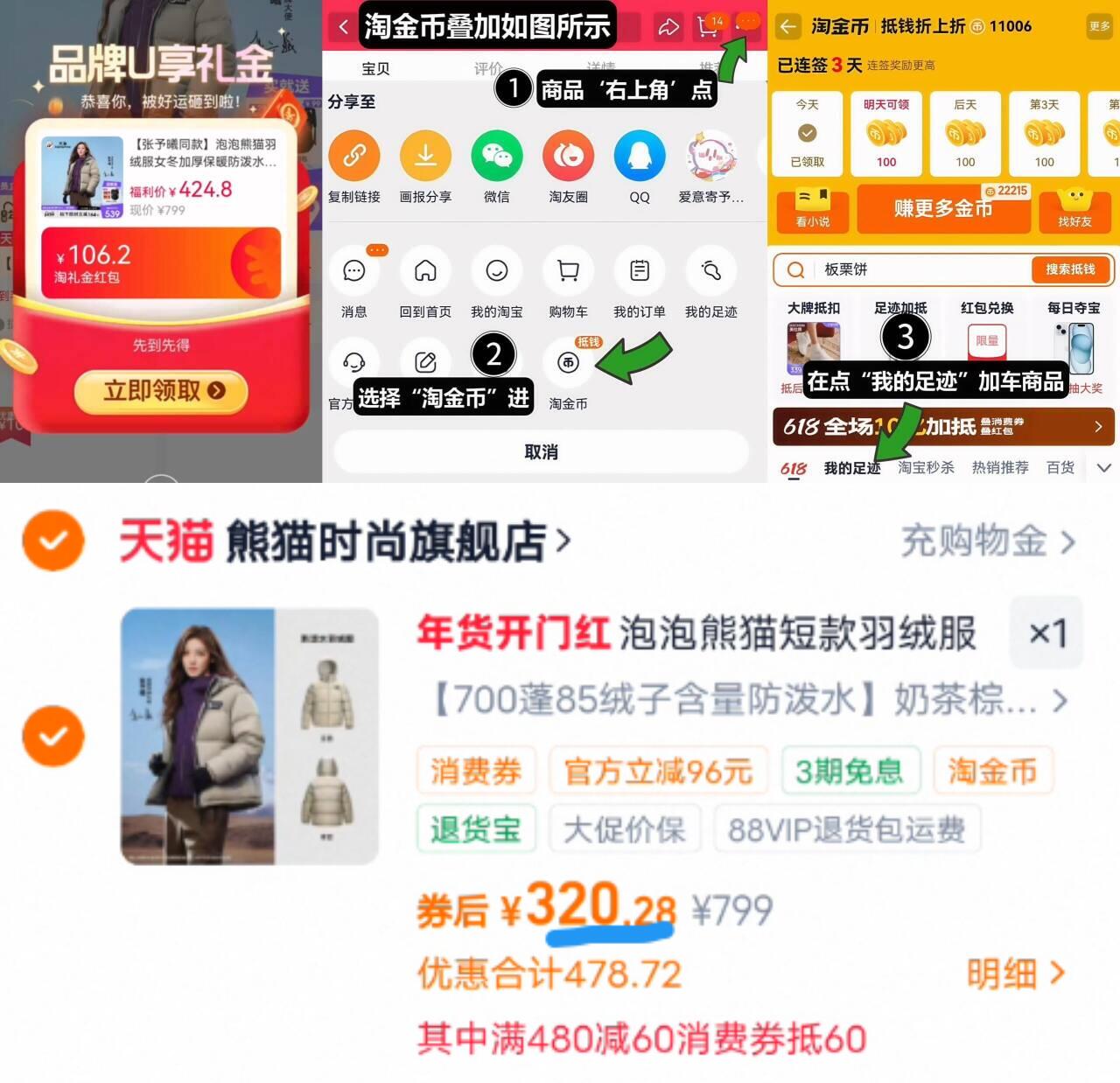 88vip320亓无券叠礼金 24金币 拍下赠熊猫大容量双肩包 需叠88vip480-60消费券好单发报员2026年01月07日 11:390举报 88vip320亓无券叠礼金 24金币拍下赠熊猫大容量双肩包需叠88vip480-60消费券如图右上角叠“淘金币”拍下【熊猫】张予曦同款泡泡羽绒服https://m.tb.cn/h.7iz8Qob复制文案
