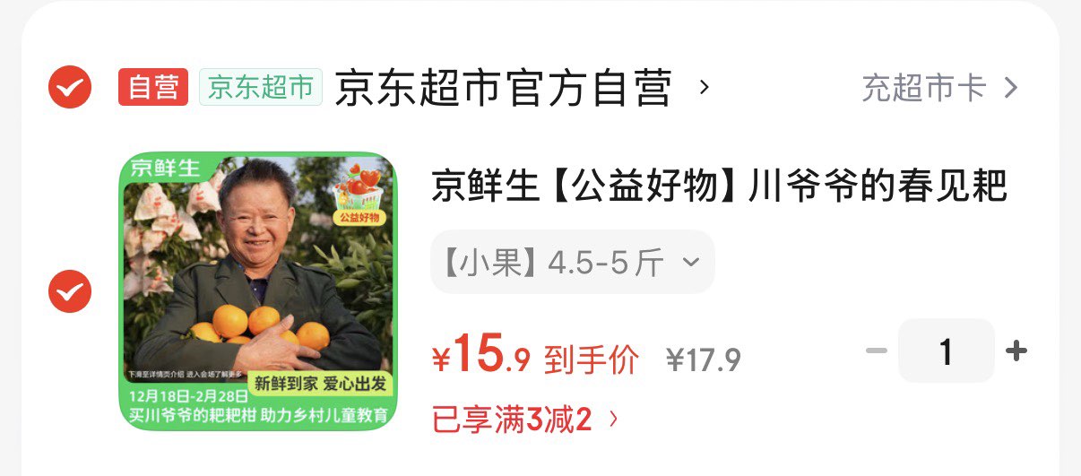 京鲜生四川春见耙耙柑 拍下17.9亓 净重4.5-5斤 如砸2券更低 好单发报员 2026年01月07日 13:12 0 举报 京鲜生四川春见耙耙柑 拍下17.9亓 净重4.5-5斤https://u.jd.com/Aame3xu 如砸2券更低 复制文案