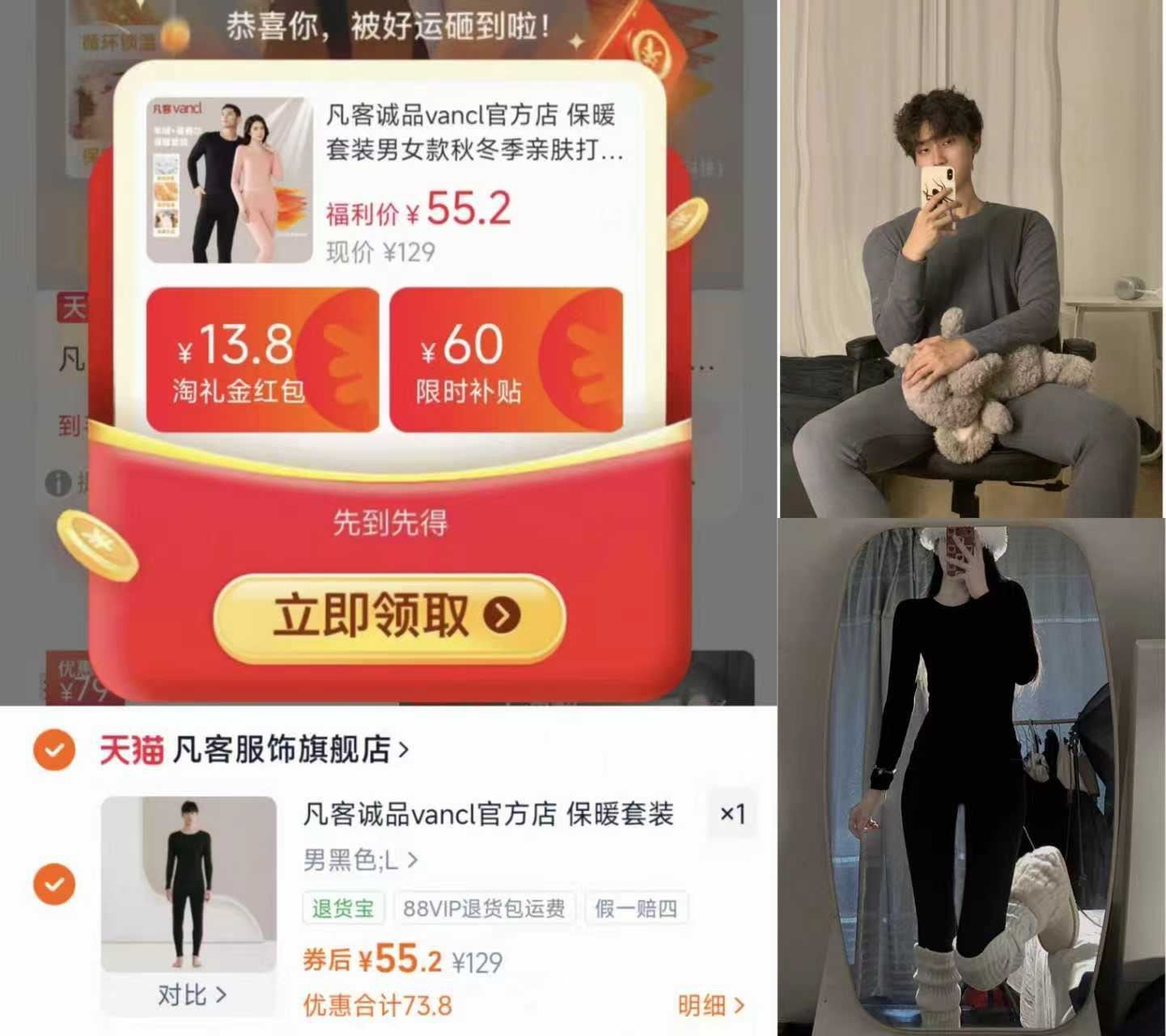 55.2元凡客保暖内衣套装 弹礼金男女尺码齐全~ 远红外发热 保暖不臃肿好单发报员2026年01月07日 14:100举报 55.2元凡客保暖内衣套装弹礼金男女尺码齐全~远红外发热 保暖不臃肿羊绒莱赛尔,触感超软-https://m.tb.cn/h.7R8USyW复制文案