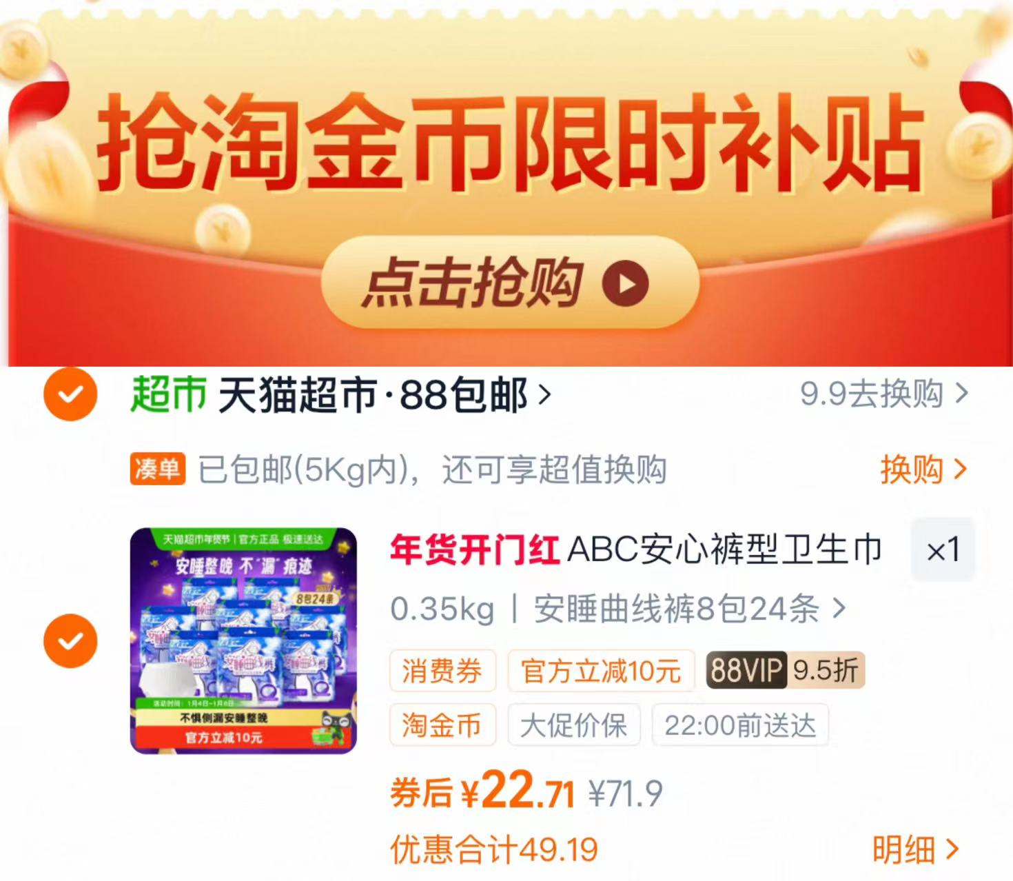 ABC裤型夜用安睡裤 3条*8包 下拉拍22.7元 0.9/条 好单发报员 2026年01月07日 14:47 0 举报 ABC裤型夜用安睡裤3条*8包 下拉拍22.7元 0.9/条https://m.tb.cn/h.7iL1PG5 复制文案