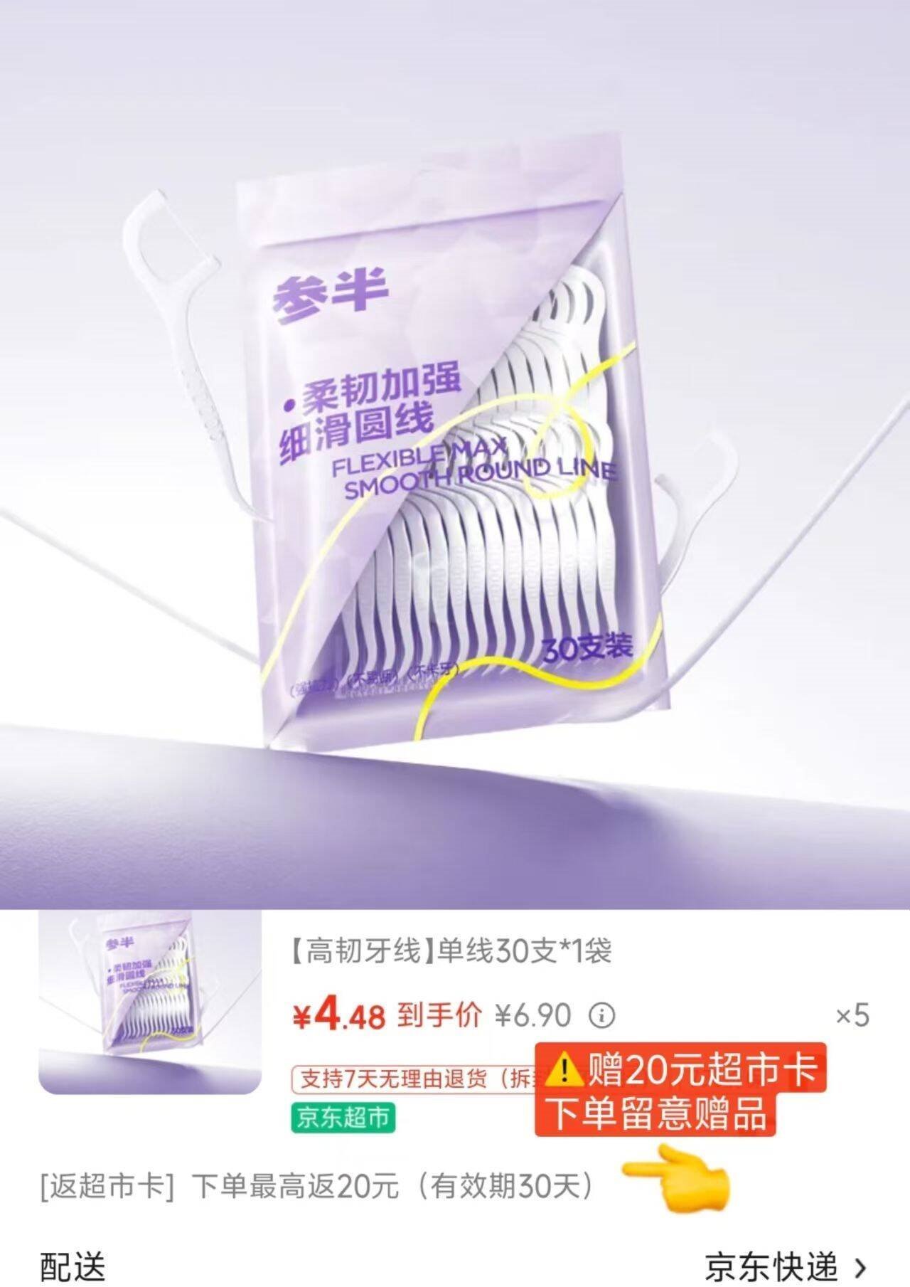抢牙线shen忦 自营 参半 牙线棒牙签30支 买5件22.4亓 U,Plus包邮好单发报员2026年01月07日 17:320举报 ——抢牙线shen忦——【自营】参半 牙线棒牙签30支https://u.jd.com/A6hN3BM买5件22.4亓 U,Plus包邮*反20亓超.市卡 牙线才0.48/包复制文案