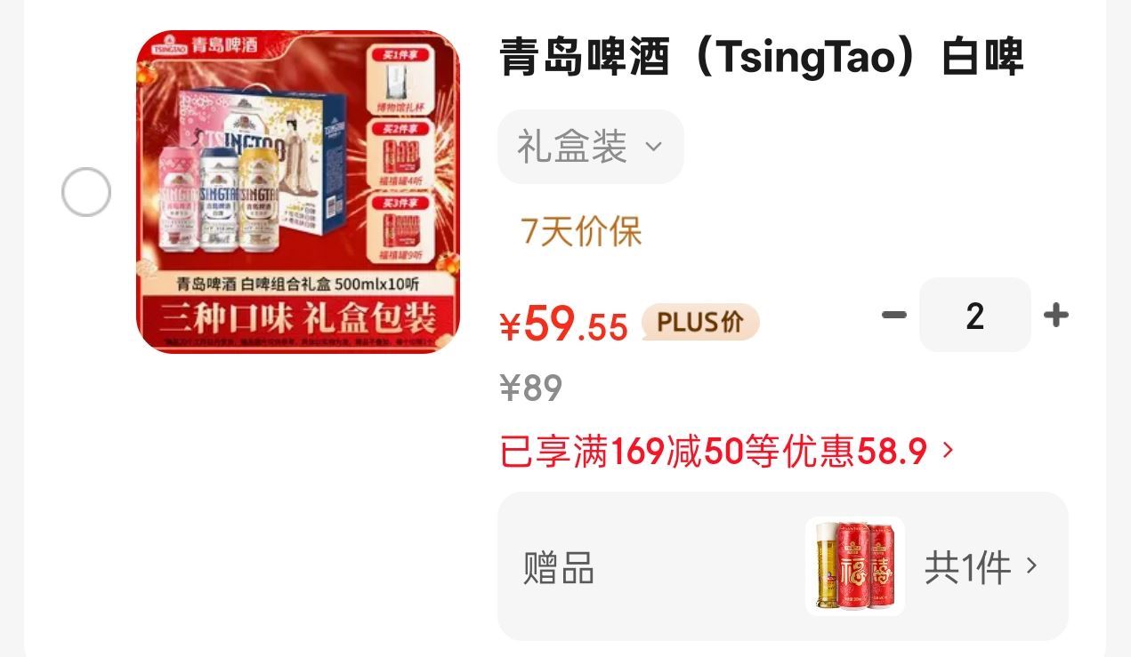 青岛啤酒 白啤三色礼盒 500ml*10听|拍2件119.1亓 贈福禧500ml*4瓶 折4.9/听 好单发报员 2026年01月07日 19:21 0 举报 青岛啤酒 白啤三色礼盒 500ml*10听|拍2件119.1亓https://u.jd.com/EatQrV1 贈福禧500ml*4瓶 折4.9/听 复制文案