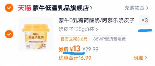 4.3亓/杯好圿拍3件39亓 某东同款3杯都要20.8亓 蒙牛 阿慕乐酸奶135g*9杯 好单发报员 2026年01月07日 19:30 0 举报 4.3亓/杯好圿拍3件39亓某东同款3杯都要20.8亓【蒙牛】阿慕乐酸奶135g*9杯https://m.tb.cn/h.7iGj9ND 复制文案
