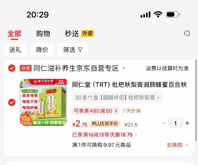 同仁堂(TRT)枇杷秋梨膏 冲泡水喝12g*30支