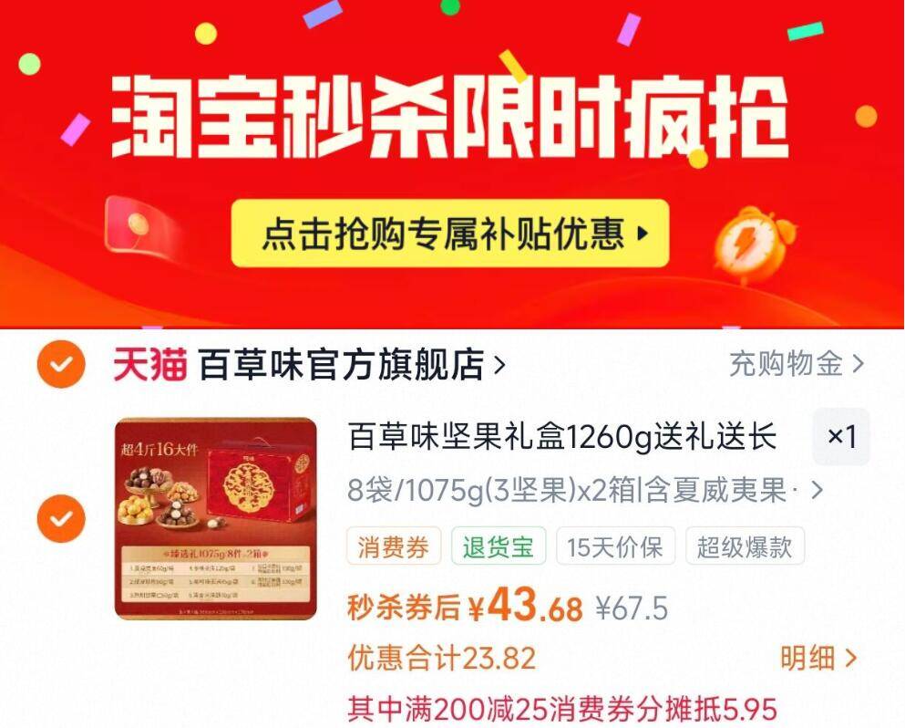 2、凑1件,用200-25消费券