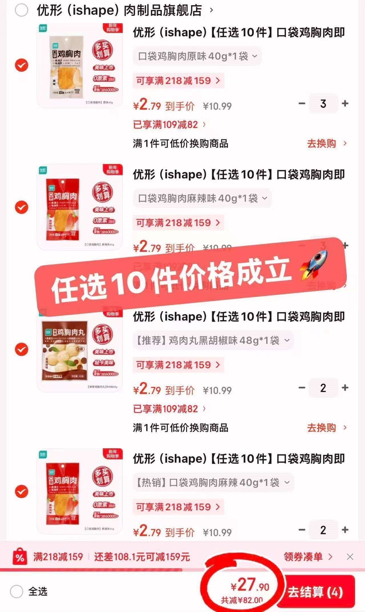 优形 鸡胸肉/鸡肉肠/鸡肉丸等 任选10件27.9亓,爱吃的挑挑 好单发报员 2026年01月08日 11:11 0 举报 优形 鸡胸肉/鸡肉肠/鸡肉丸等https://u.jd.com/EgLIuET 任选10件27.9亓,爱吃的挑挑 复制文案