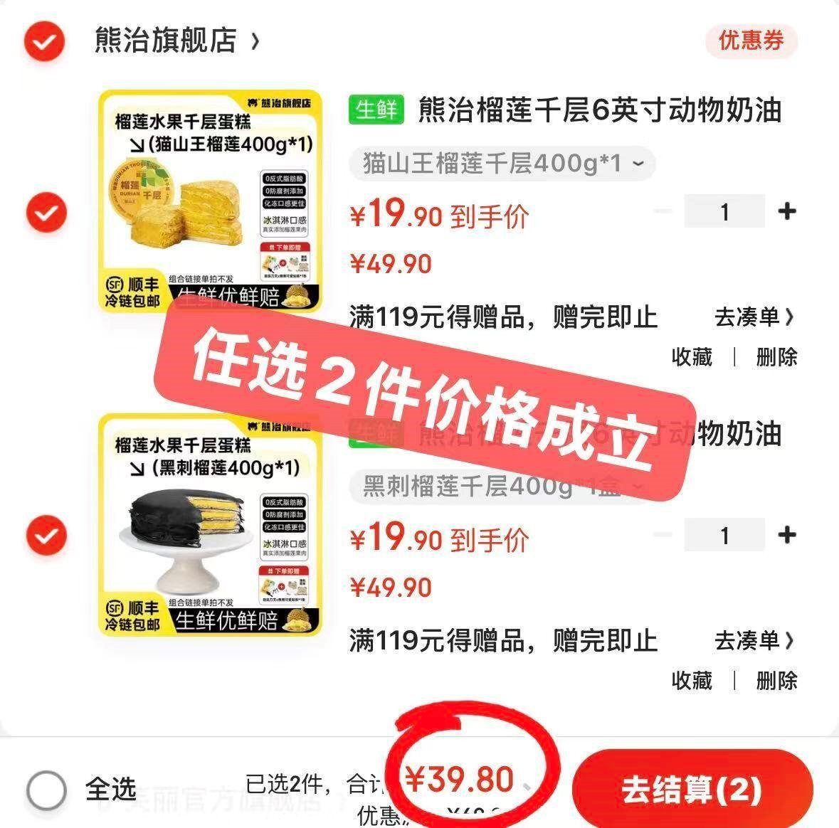 熊治 白金榴莲千层6英寸400g 任选2件39.8亓,0反式脂肪酸好单发报员2026年01月08日 13:210举报 熊治 白金榴莲千层6英寸400ghttps://u.jd.com/EOLpJOg任选2件39.8亓,0反式脂肪酸复制文案