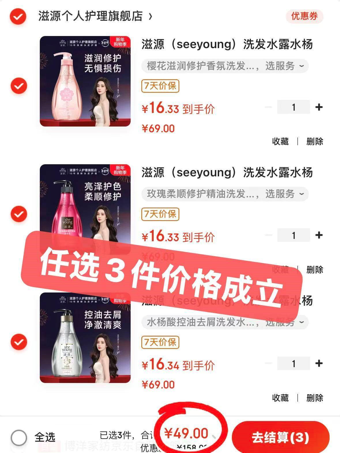 滋源 控油去屑洗发水400ml 任选3件49亓,刚.需挑一挑好单发报员2026年01月08日 14:240举报 滋源 控油去屑洗发水400mlhttps://u.jd.com/E6CtiqT任选3件49亓,刚.需挑一挑复制文案