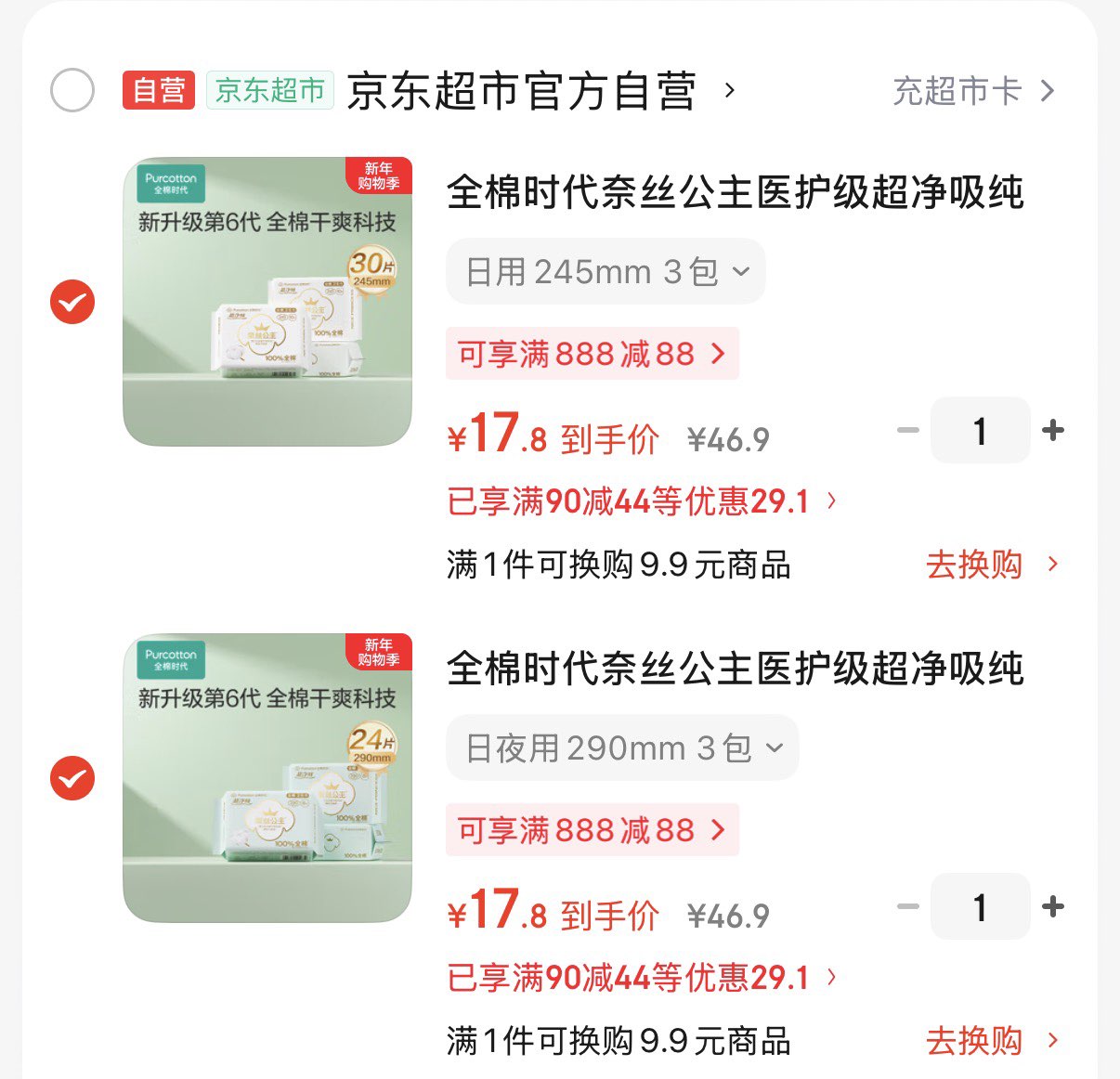 全棉时代奈丝公主医护级卫生巾