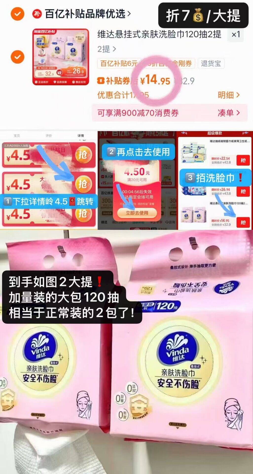 7元/提 维达悬挂洗脸巾120抽 看图下拉详情岭跳转 - 好单发报员 2026年01月08日 18:25 0 举报 7元/提 维达悬挂洗脸巾120抽看图下拉详情岭跳转https://m.tb.cn/h.7RmevDO-14.9到手加糧装2大提!一提相当于平时的2包 厚实好用 复制文案