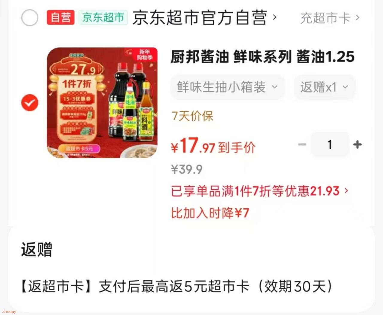 厨邦酱油 鲜味系列 酱油1.25L*2 蚝油490g 料酒500ml,首购凑后【17.9】返5卡