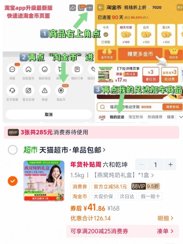 商品右上角3个点,选淘金币