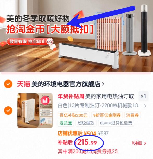 2、下拉详情页进淘金币会场加车拍下