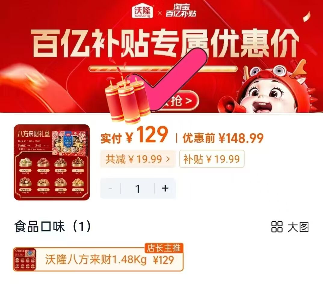 129元 叠加下拉详情百补 沃隆八方来财坚果礼盒1.48kg 好单发报员 2026年01月09日 13:33 0 举报 129元【叠加下拉详情百补】沃隆八方来财坚果礼盒1.48kghttps://m.tb.cn/h.78LKTb6 复制文案