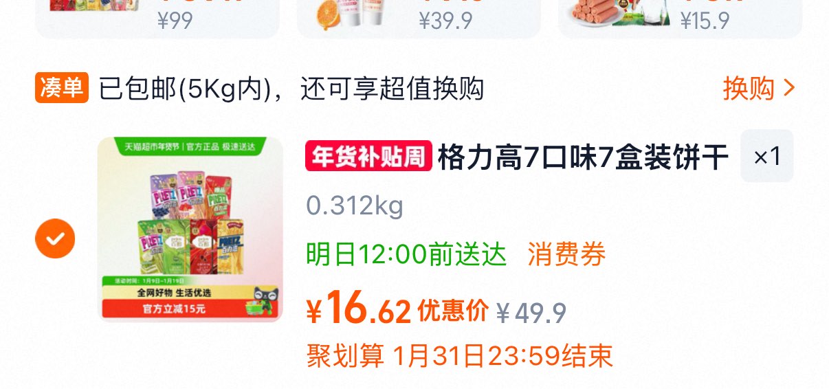 格力高 百醇百力滋组合装7盒装 领李金过淘金币16.62亓 好单发报员 2026年01月09日 17:18 0 举报 格力高 百醇百力滋组合装7盒装领李金过淘金币16.62亓https://m.tb.cn/h.7Q0mXSF 复制文案