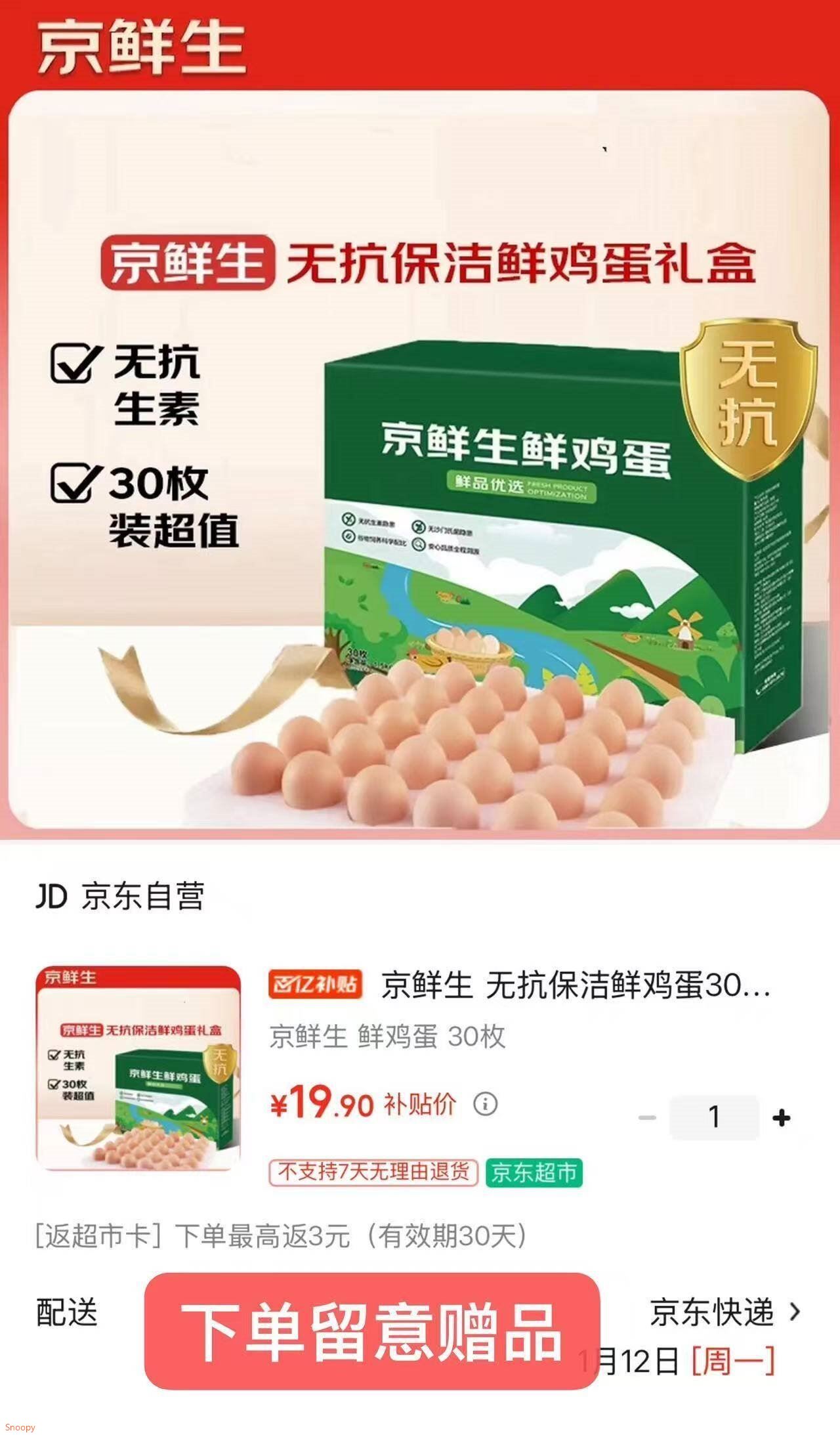 快块鸡蛋shen忦 京鲜生 无抗保洁鲜鸡蛋30枚 17.9自营包U,反3亓超.市卡 好单发报员 2026年01月09日 18:20 0 举报 ——快块鸡蛋shen忦——京鲜生 无抗保洁鲜鸡蛋30枚https://u.jd.com/ErihY0e 17.9自营包U,反3亓超.市卡*才0.49/枚 这忦给.力 错.过涨 复制文案