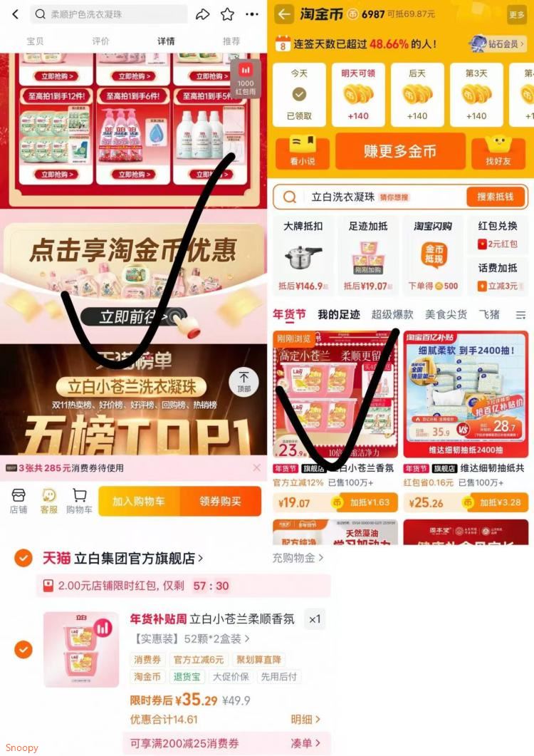 立白洗衣凝珠52颗*2元35.3 进店弹2包 淘淘金币才成立 - 好单发报员 2026年01月10日 13:22 0 举报 立白洗衣凝珠52颗*2元35.3进店弹2包 淘淘金币才成立-如图下划详情进淘金币页面找到商品后叠金币直接拍下https://m.tb.cn/h.7jsFNJo 复制文案