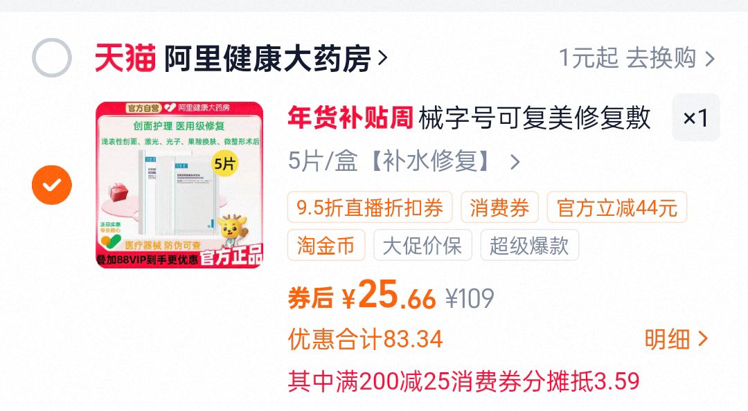 可复美面膜5片