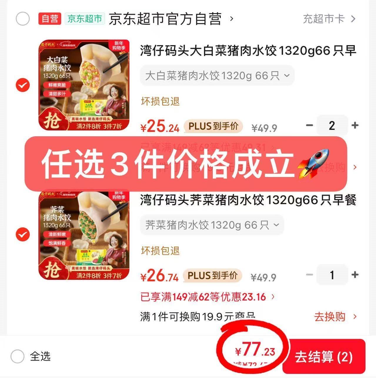 Plus新客任选3件到手77.2亓