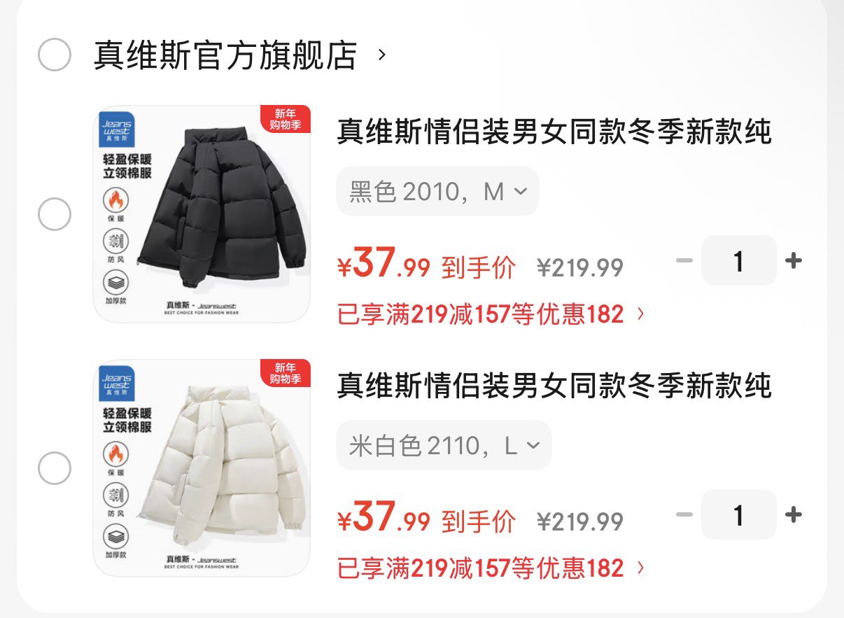 Plus领200-25券 真维斯情侣棉服 37.7亓好单发报员2026年01月12日 19:490举报 Plus领200-25券https://u.jd.com/EOayU8C 真维斯情侣棉服 37.7亓https://u.jd.com/EGasewx复制文案