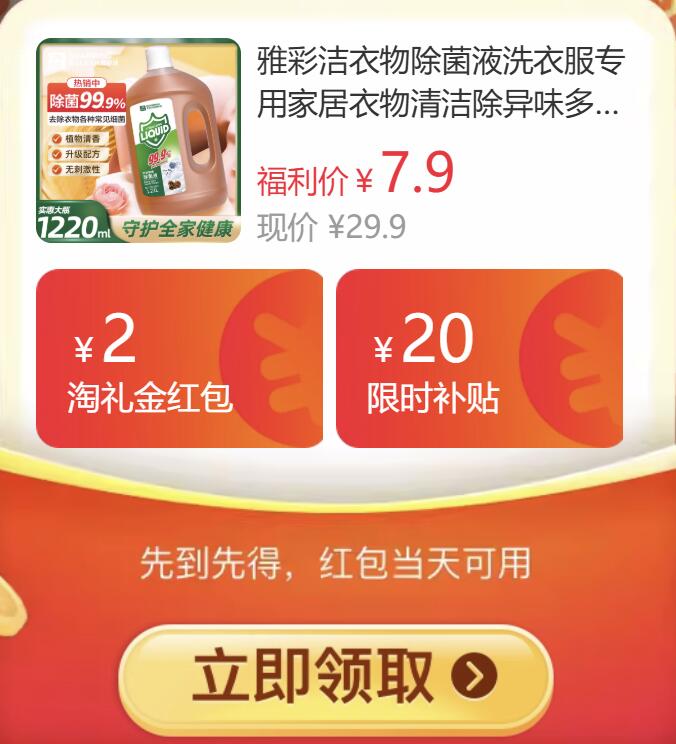 7.9亓,速 雅彩洁衣物除菌液1220ml/大瓶 好单发报员 2026年01月13日 10:05 0 举报 7.9亓,速雅彩洁衣物除菌液1220ml/大瓶https://m.tb.cn/h.79Wc461 复制文案