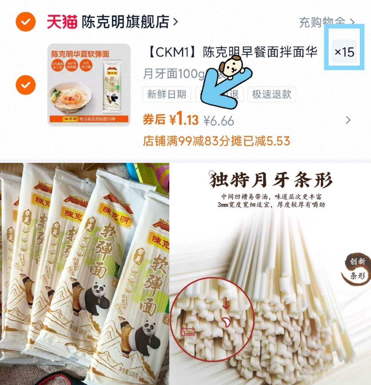 【陈克明】挂面龙须面100g*15袋