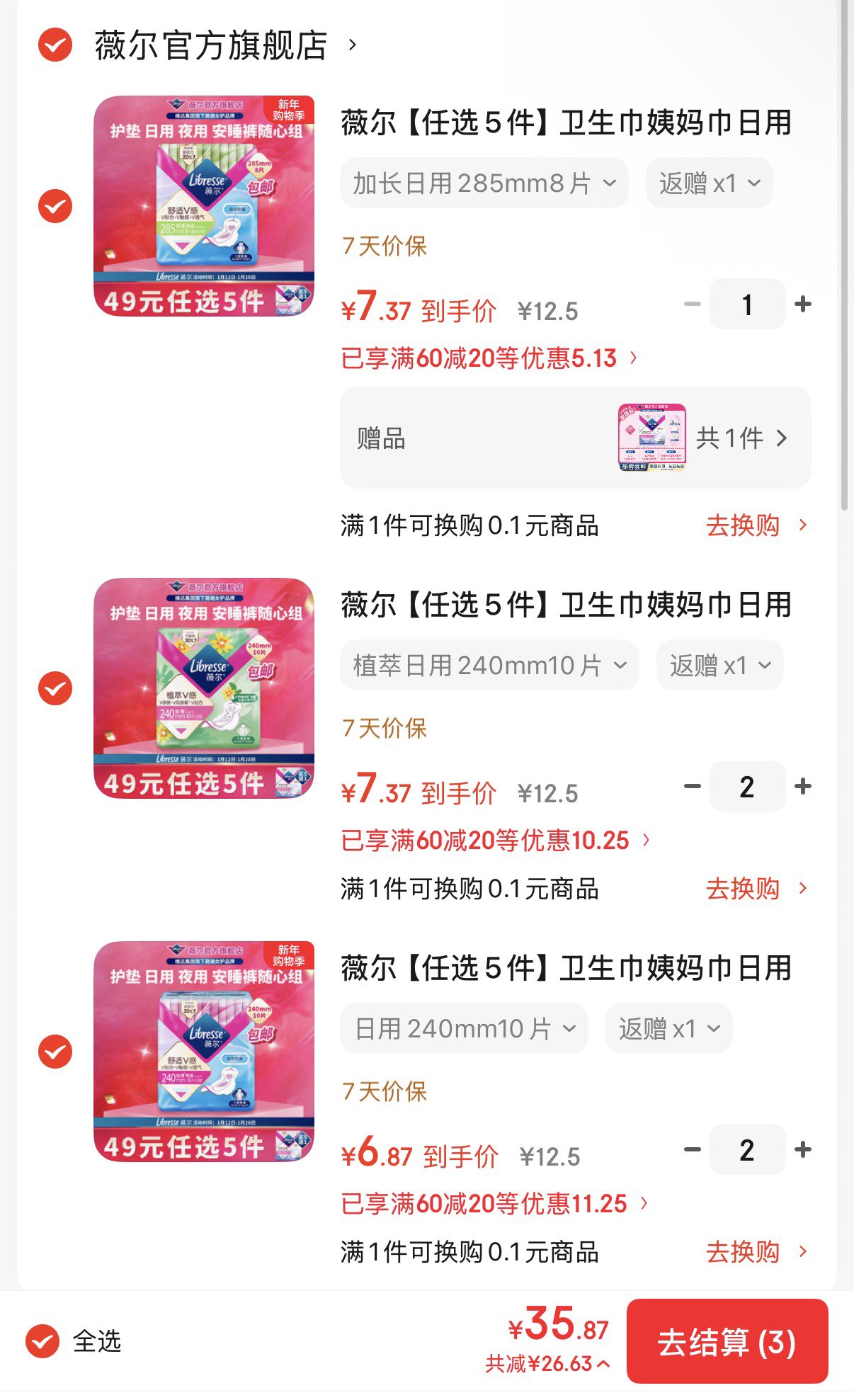 任选5件36亓 反5超市卡